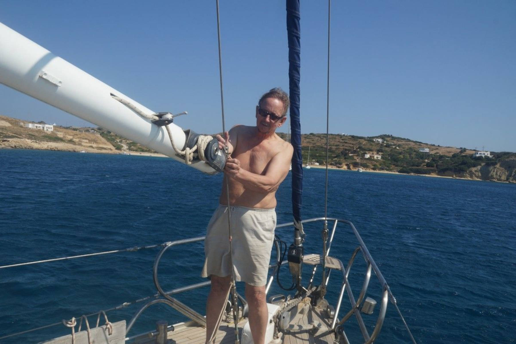 Said and done. More than two hours at the helm for the skipper. A night passage between islands, essentially by instruments. We reach the same island of Kalymnos, but this time from the southern side. There is a port there.